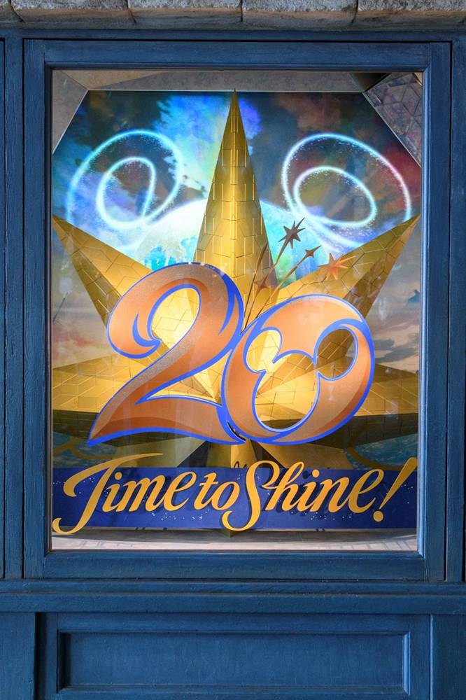 There are also special “Time to Shine!” anniversary decorations all around the front of the park.