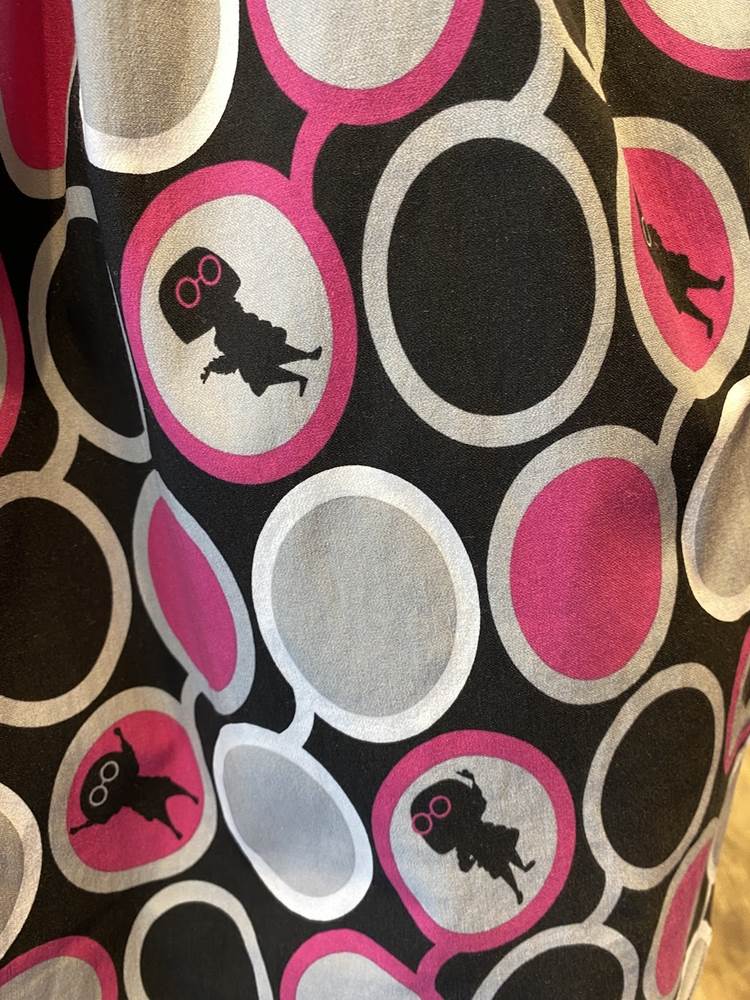 While we love the Hunchback look, the real standout is this eye popping Edna Mode dress! Fashion designer to superheroes, Mode has an eye for color, design, and functionality. Inspired by her talent and unique style, this chic dress brings together colors of black, white, pink and grey in a fun pattern that plays off her oversized black framed glasses. The top features pink accents across the collar and waistband with a glasses icon bringing the look together. Finally the skirt includes images of Edna in some signature poses. It’s perfect, darling!