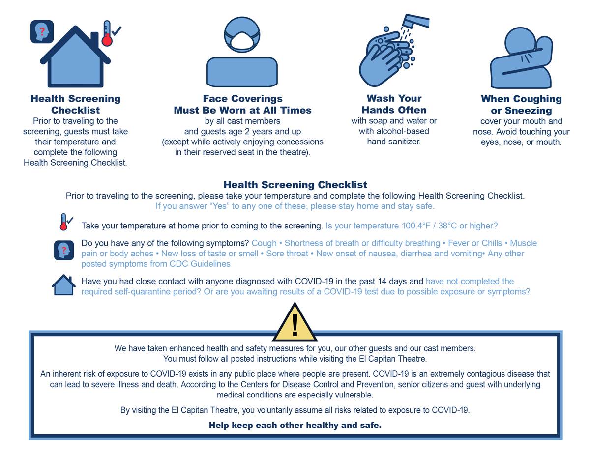 - The El Capitan Theatre also asks that guests complete the health screening shown below prior to visiting the theatre.