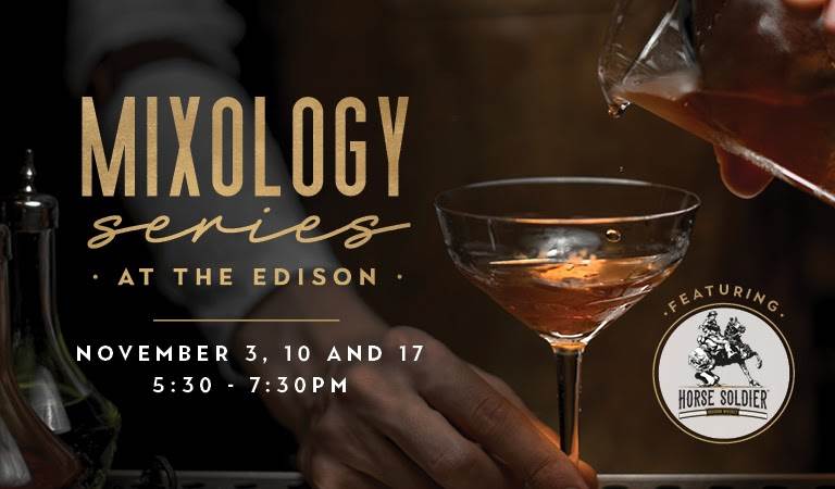 - Attendees of The Edison’s exclusive Mixology series will be treated to two deliciously mixed Horse Soldier Bourbon cocktails with fall-inspired flavors. These cocktails will be expertly paired with two tasty and savory small plates, such as candied bacon, calamari, and guacamole.