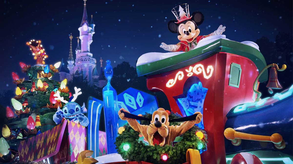 - The new “Mickey’s Dazzling Christmas Parade!” has been in development at Disneyland Paris for the last several years. It features five gigantic floats, with Mickey and friends, Disney Princesses and of course, Santa Claus.