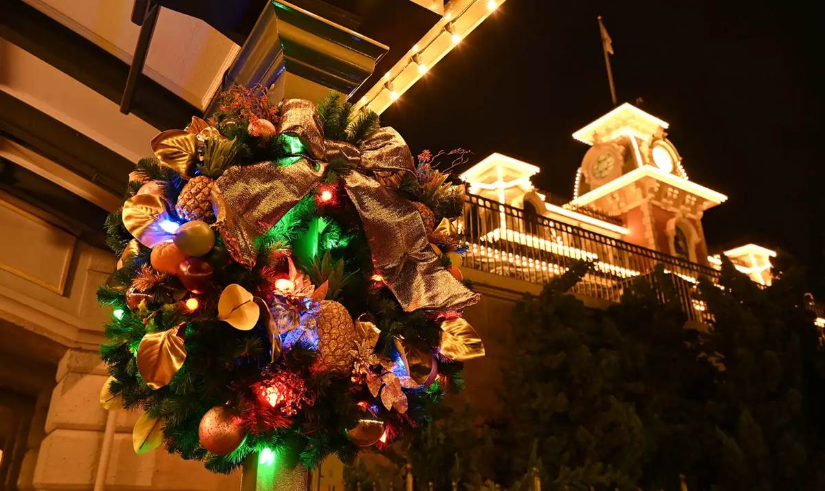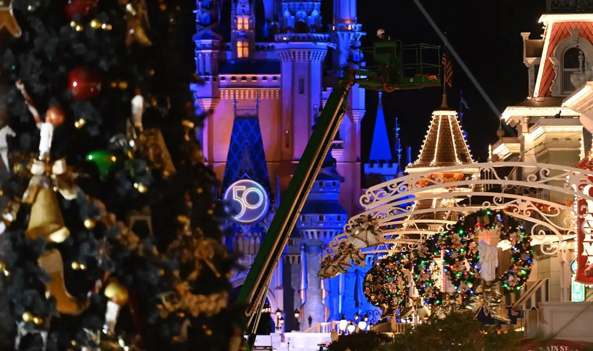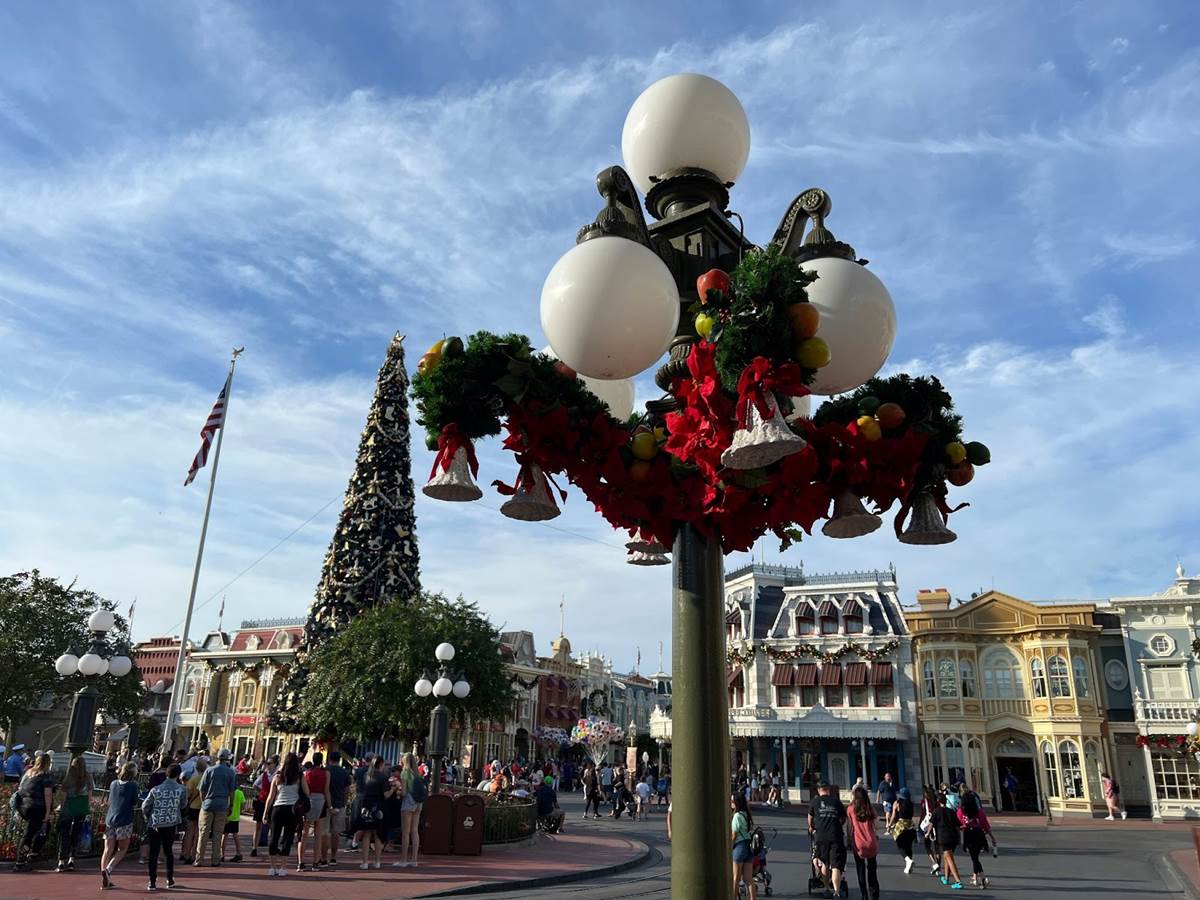 - In a single night, Halloween has made way for the holiday season at the Magic Kingdom. Main Street U.S.A. has been magically transformed with the installation of dazzling holiday-themed décor, featuring special touches of EARidescence to honor the Walt Disney World Resort 50th anniversary celebration.