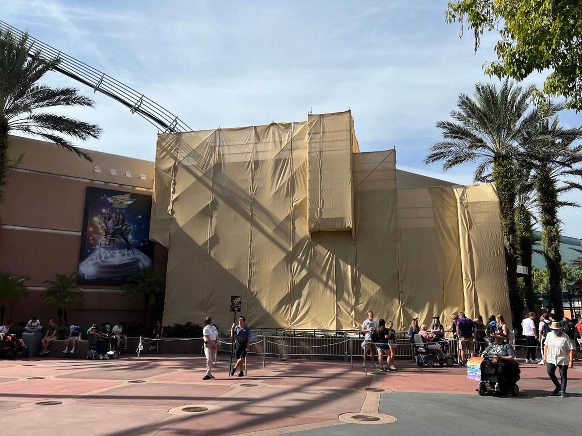 Facade work is also taking place, as the giant guitar in front of Rock ‘n Roller Coaster is covered up by scrims and scaffolding.