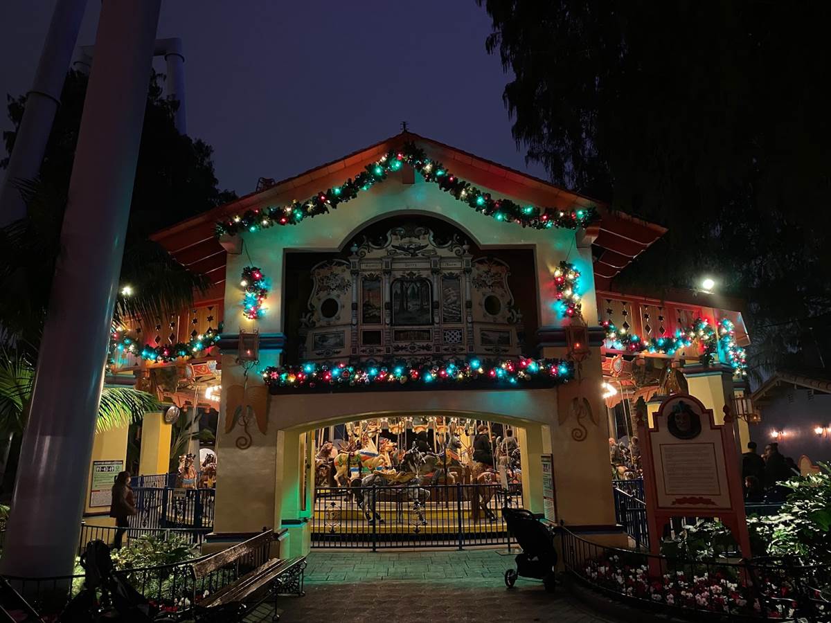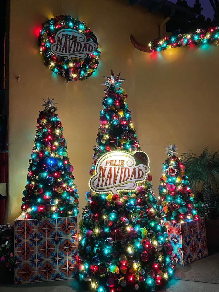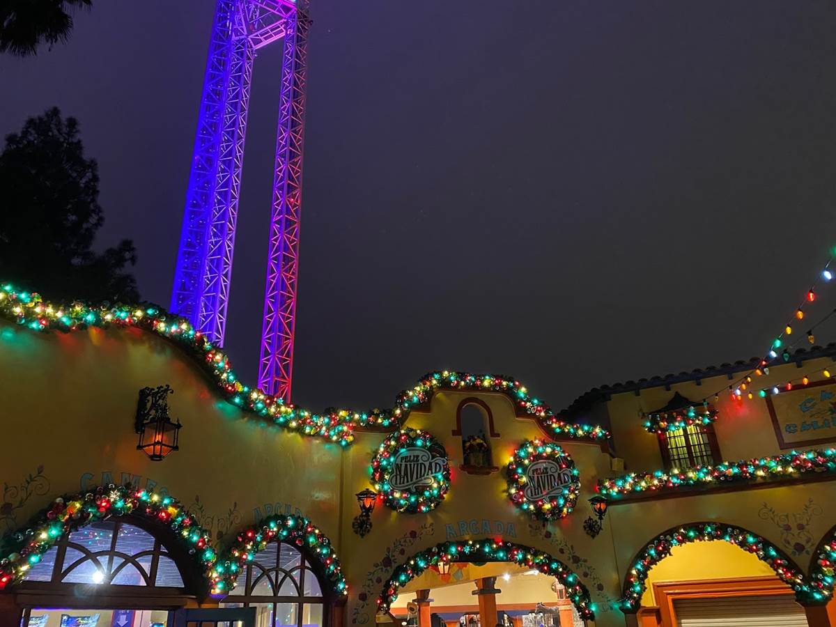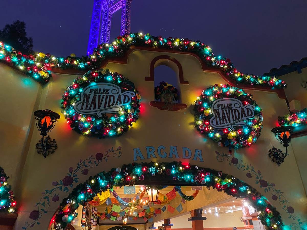 The Fiesta Village area of the park looked all ready to go for the holidays, with beautiful lights strung on and around the Spanish inspired buildings.