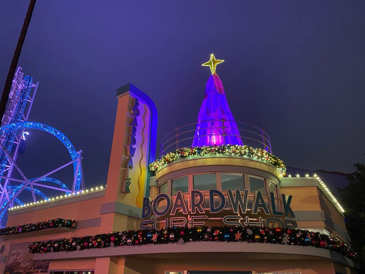 Over in the Boardwalk area of the park, garland adorned most of the buildings.