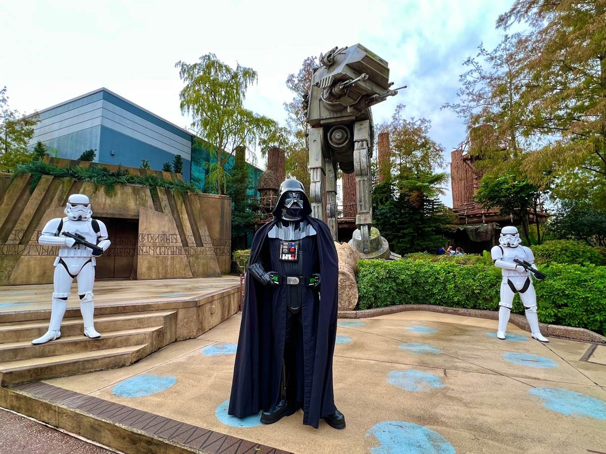 Another Disney+ Day bonus was special character greetings, like Darth Vader and some Stormtroopers in front of Star Tours: The Adventures Continue.