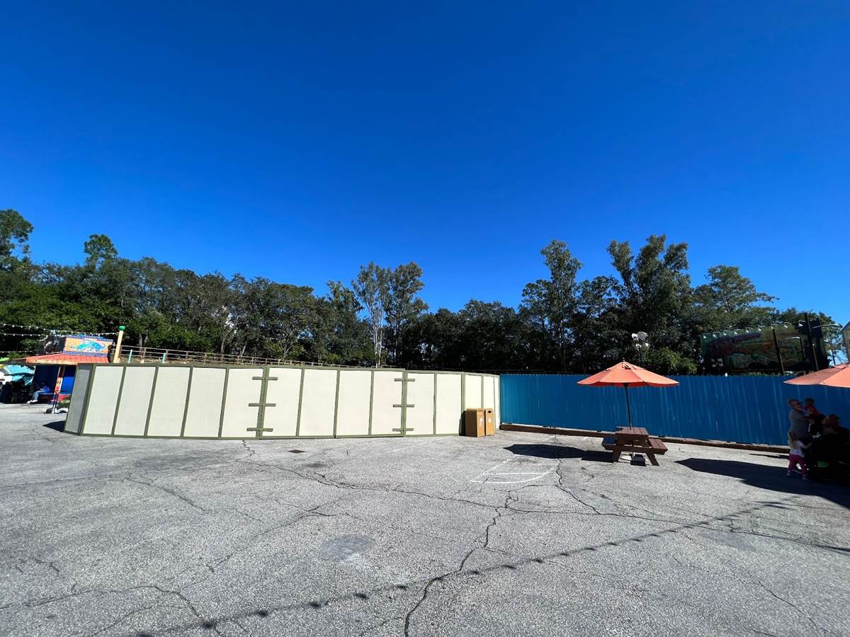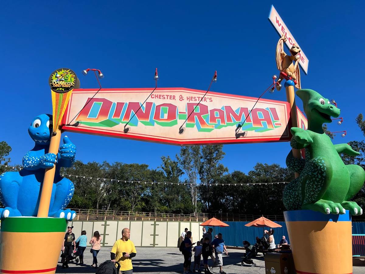 Entering Chester & Hester’s Dino-Rama, things look a lot more barren than before without the giant spinning coaster in the background.
