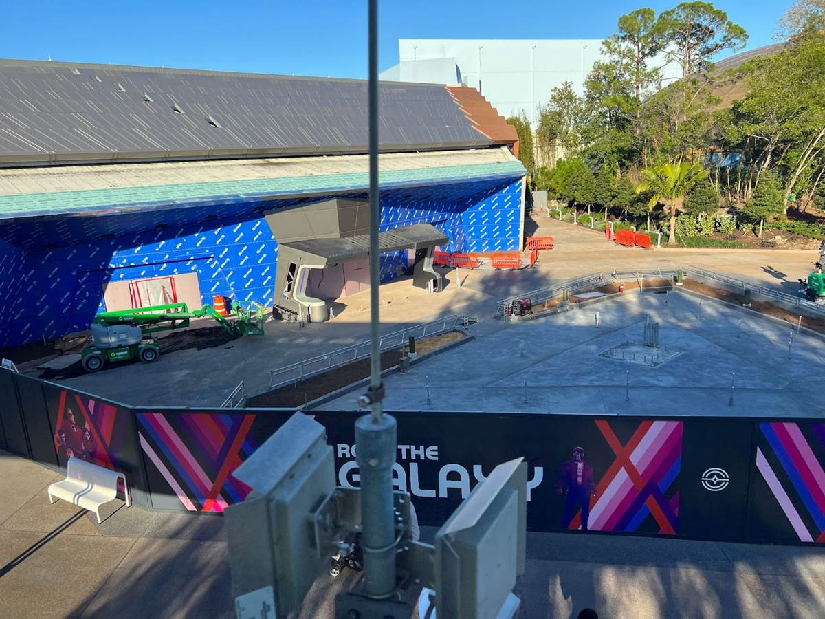 Starting off at Guardians of the Galaxy: Cosmic Rewind, where we can see the cast member Greeter structure that was installed last night.