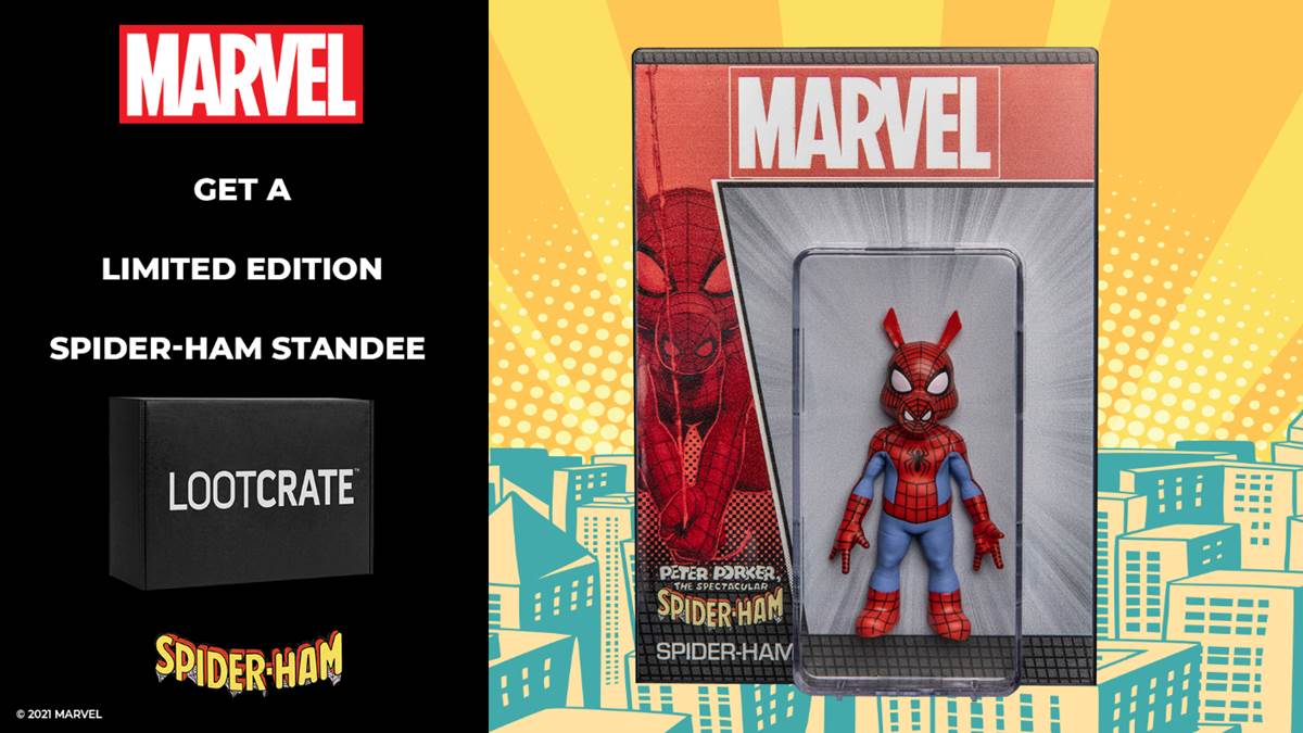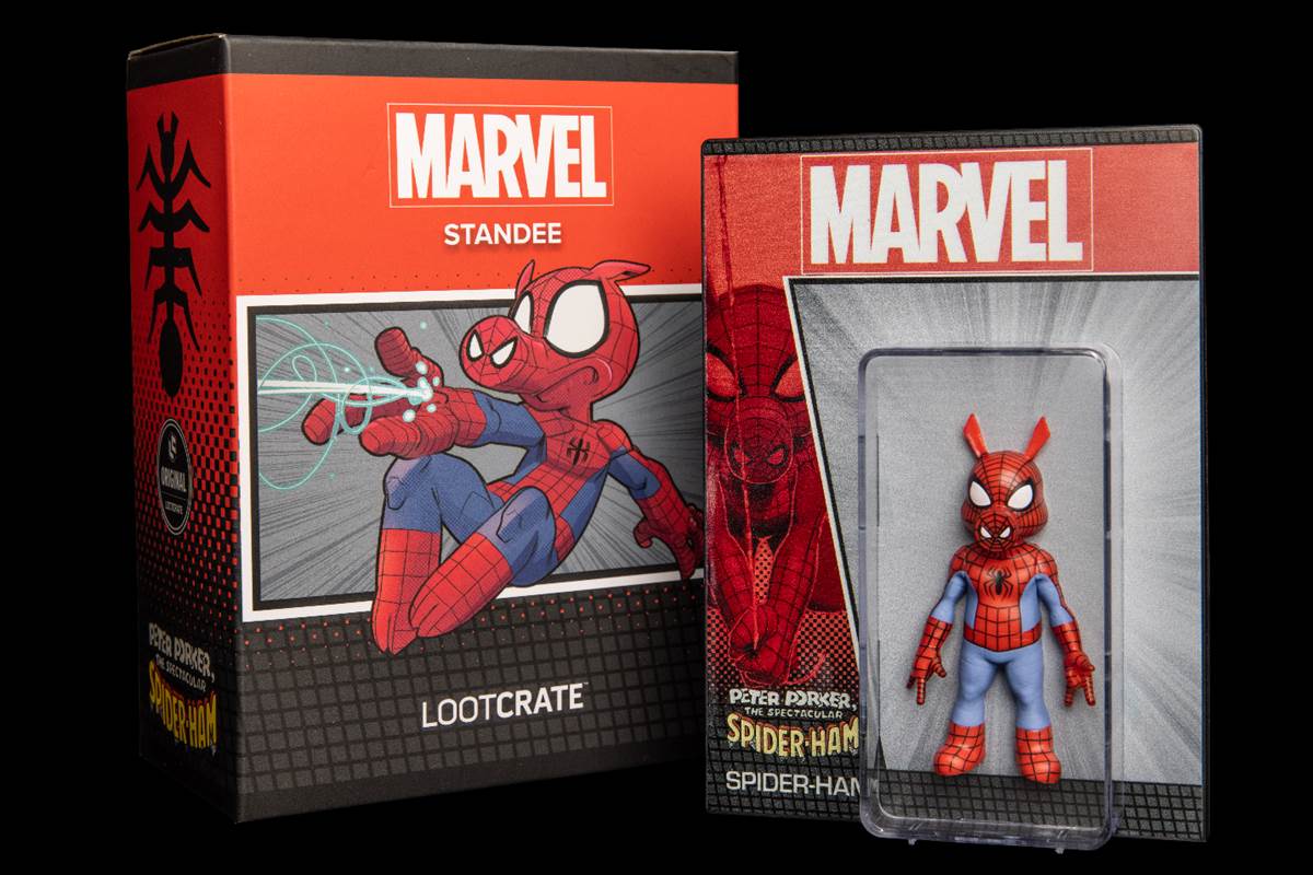 - Exclusive Spider-Ham Standee - display Peter Porker, the Spectacular Spider-Ham next to your other cherished Loot Crate Marvel Standees from the series.