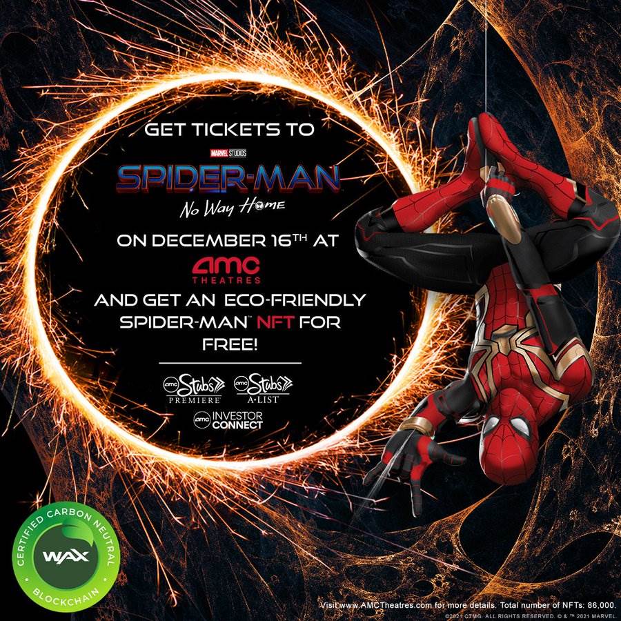 - When tickets for Spider-Man: No Way Home go on sale tomorrow, those purchasing tickets at AMC Theatres can swing in and grab the theater chain’s first Eco-Friendly NFT.