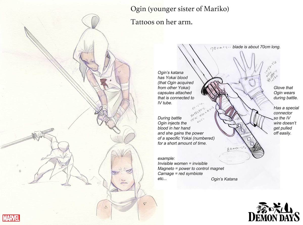 - You can see the converse for both “Blood Feud” and the Demon Days Treasury Edition TPB above, as well as some new character designs below.