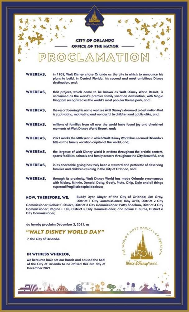 December 3rd Officially Declared “Walt Disney World Day” by the City of Orlando and Orange County
