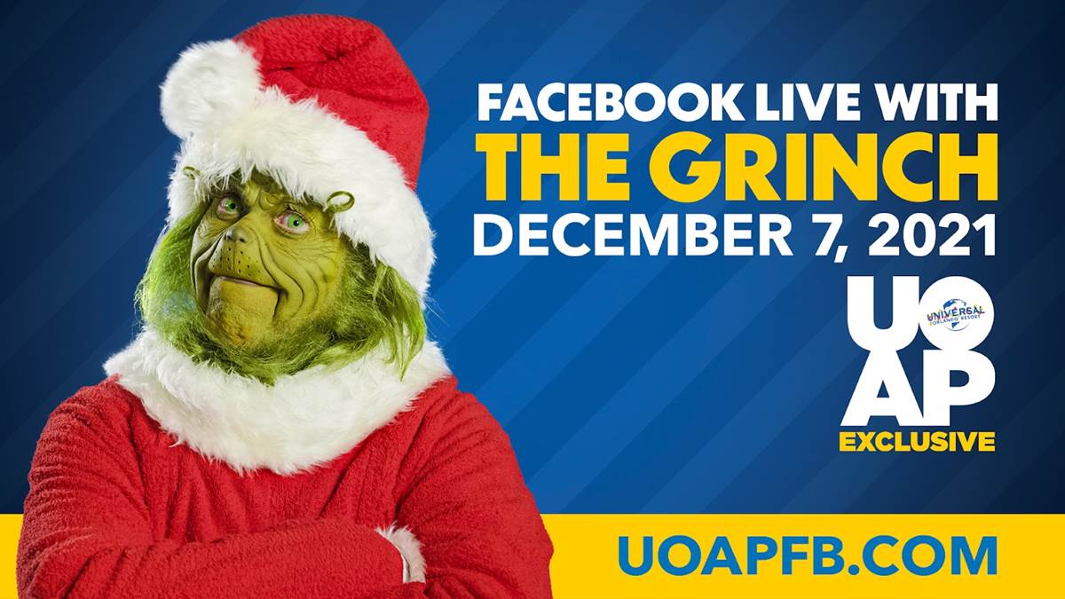 He’s a mean one, but he is willing to take some time out of his day to speak with Universal Orlando Passholders tomorrow. That’s right, the Grinch himself will hold a live video on the Universal Orlando Passholder Facebook group tomorrow.