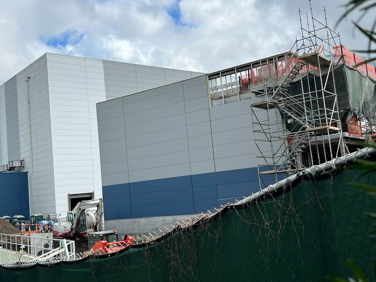 The smaller structure to the right of the billboard started construction around August and has since been mostly enclosed.
