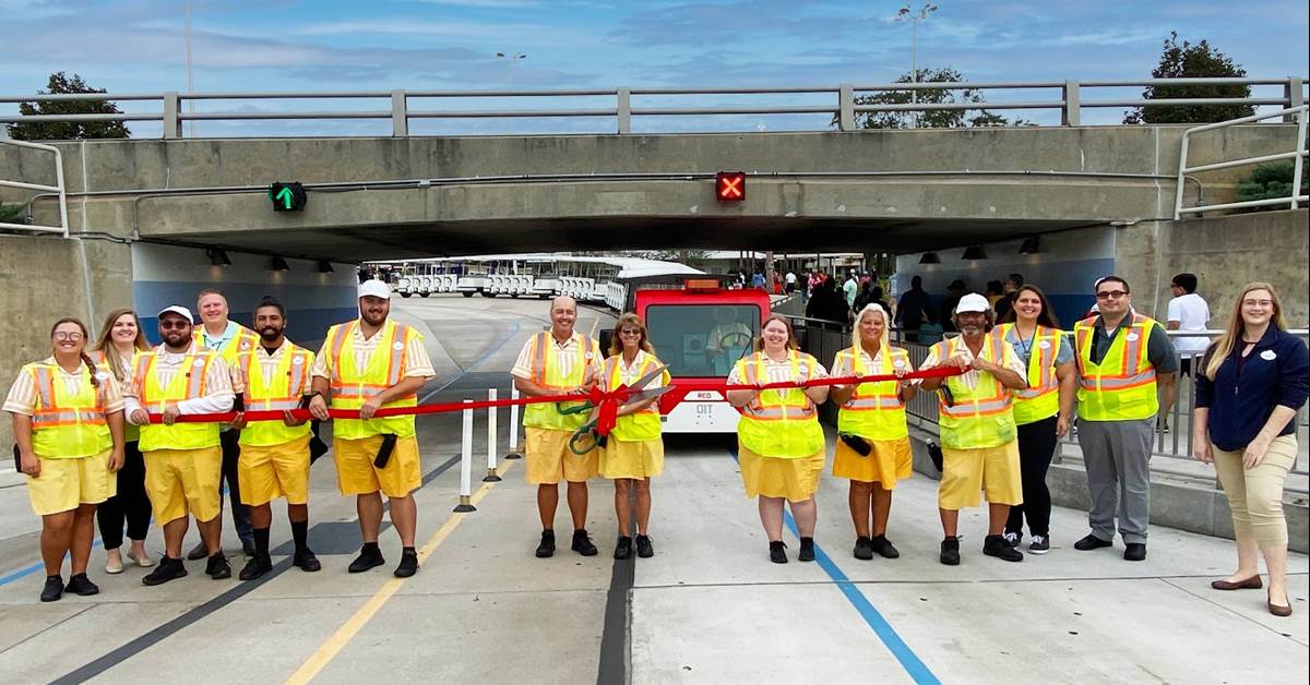 - Disney held a ribbon-cutting ceremony with cast members this morning at the Transportation and Ticket Center to celebrate the return of the trams.