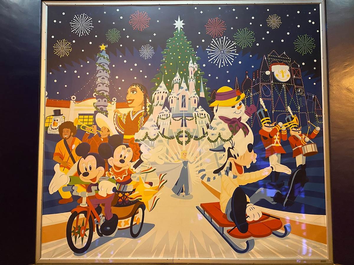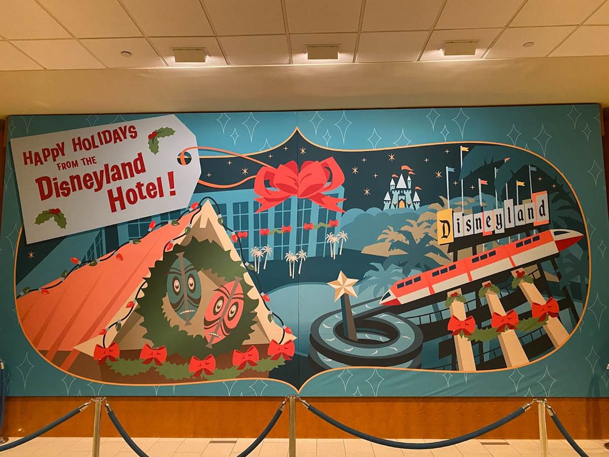 I absolutely adore this artwork featured on the former ESPN Zone building, celebrating pretty much every part of the holiday season at the Disneyland Resort!