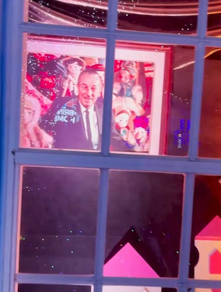 - The decorations also include details such as a framed photo of Walt Disney with some of the Original It’s a Small World dolls and banners celebrating the Walt Disney World 50th Anniversary.