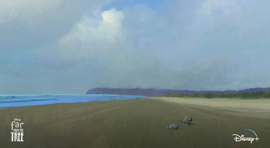 - The color keys showcased some of the dramatic locations in the new short, which tells the story of a parent and child raccoon as they explore a Pacific Northwest beach, with the little one more interested in exploration and the parent, naturally, focused on keeping the young one safe.