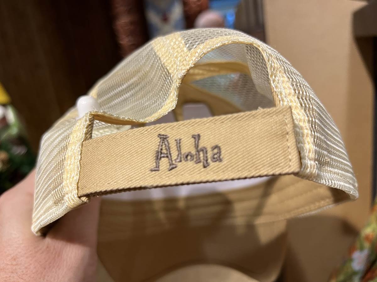 A more traditional piece of headgear but with a style all its own, a Polynesian Village resort ball cap with the specialty texture will run $29.99 The word “Aloha” also appears on the adjustable band of the cap, so you can wear your hat backwards to say hello to friends, or wear it regularly to say good bye.