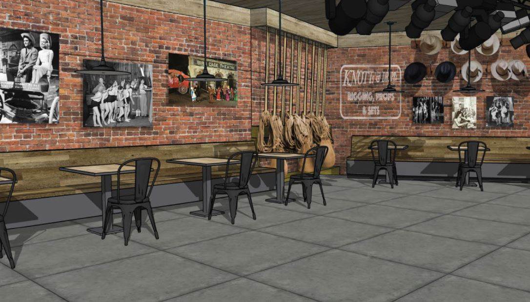 - The backstory will be that of a converted backstage props and costume warehouse where actors and patrons mingle after shows break at the theater next door. The restaurant’s decor includes props, costumes and set pieces from past shows at the theater.