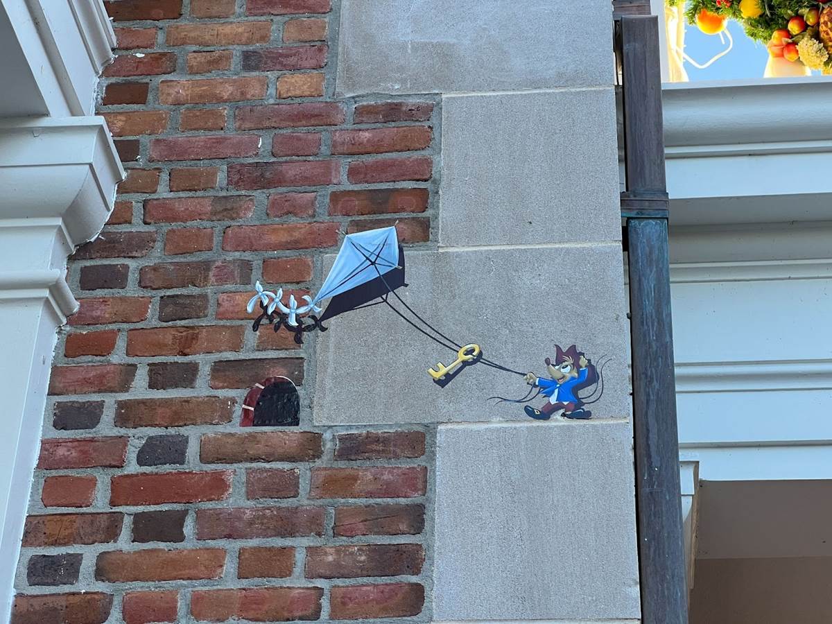 One of the more obscure characters found on the World Showcase promenade is this little mouse, Amos, from the animated short, Ben & Me. In the short, dating back to 1953, Amos met and befriended Benjamin Franklin, eventually aiding in his publishing, inventions, and political career. Amongst Amos' contributions were bifocals, inspiring Franklin to build the stove, and changing the format of Poor Richard's Almanac to an event-oriented newspaper, the Pennsylvania Gazette.