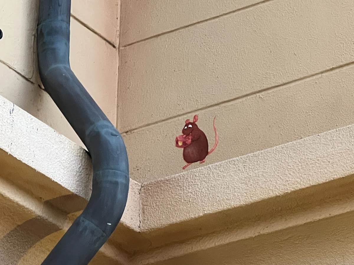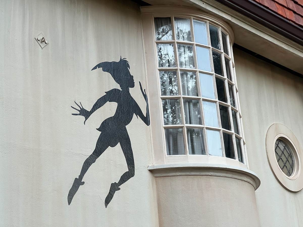 Across the street, Peter Pan’s shadow can be found approaching an upper level window, perhaps evading being found by Pan himself.