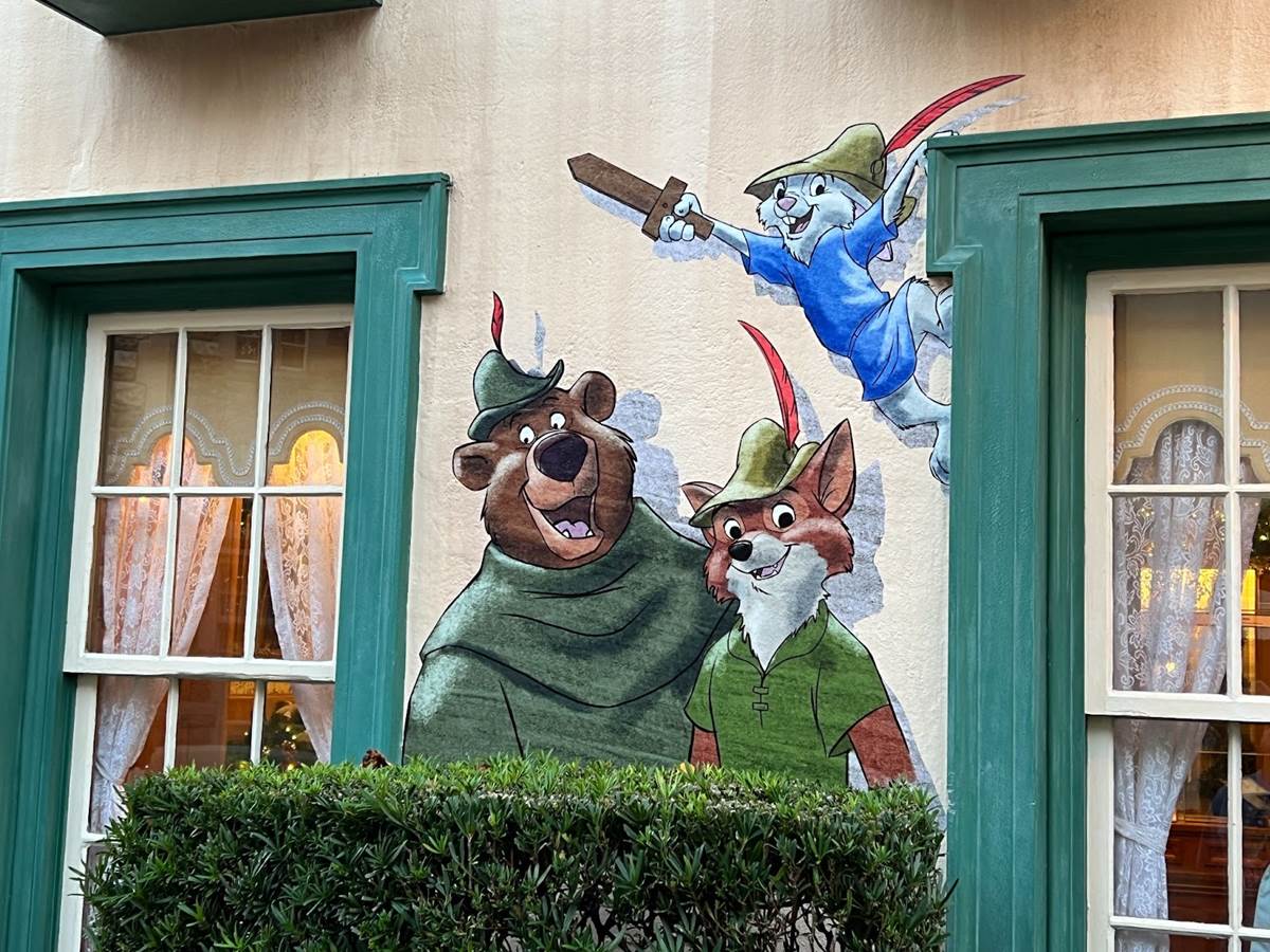 Across the hypothetical Thames river (that in this instance, leads to Crescent Lake) at the UK Pavilion, some Sherwood Forest friends make an appearance, including Skippy, Robin Hood, and Little John.