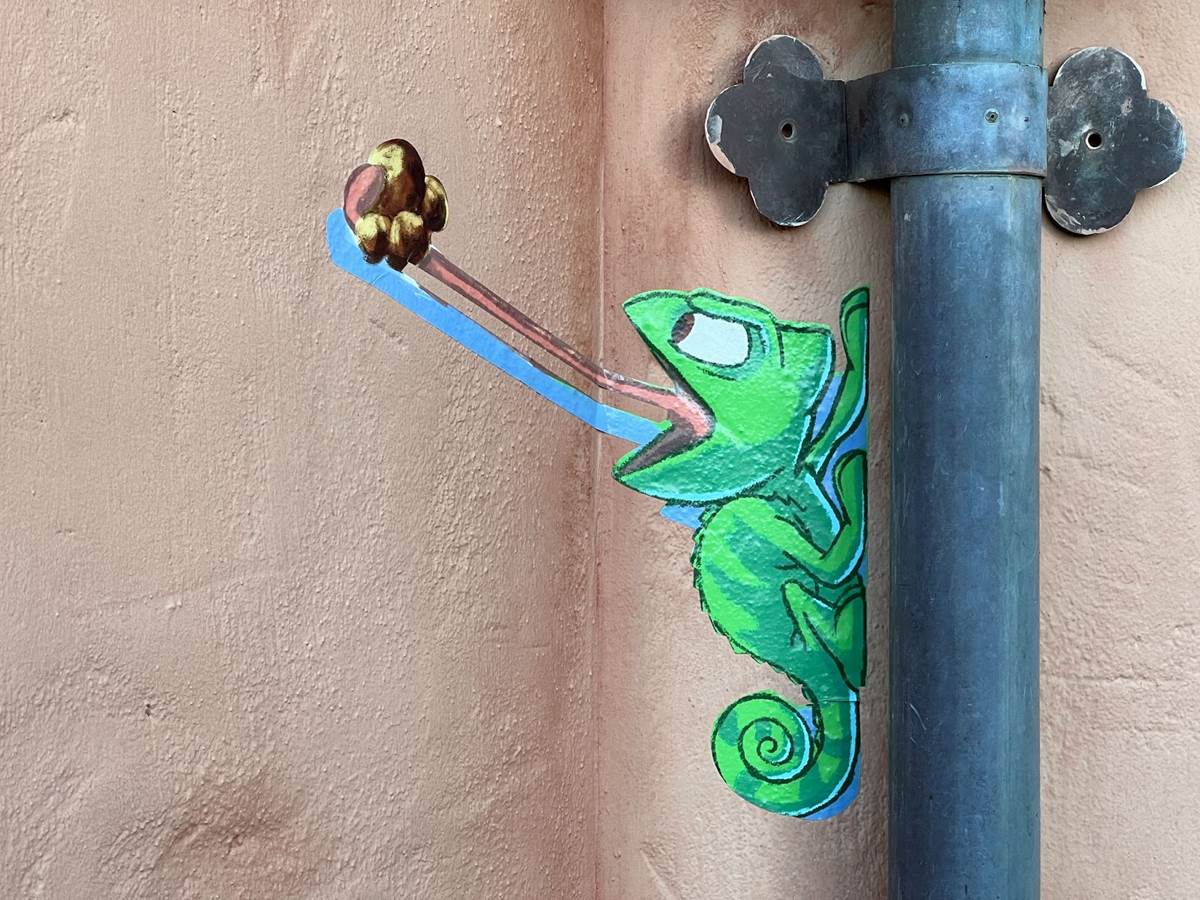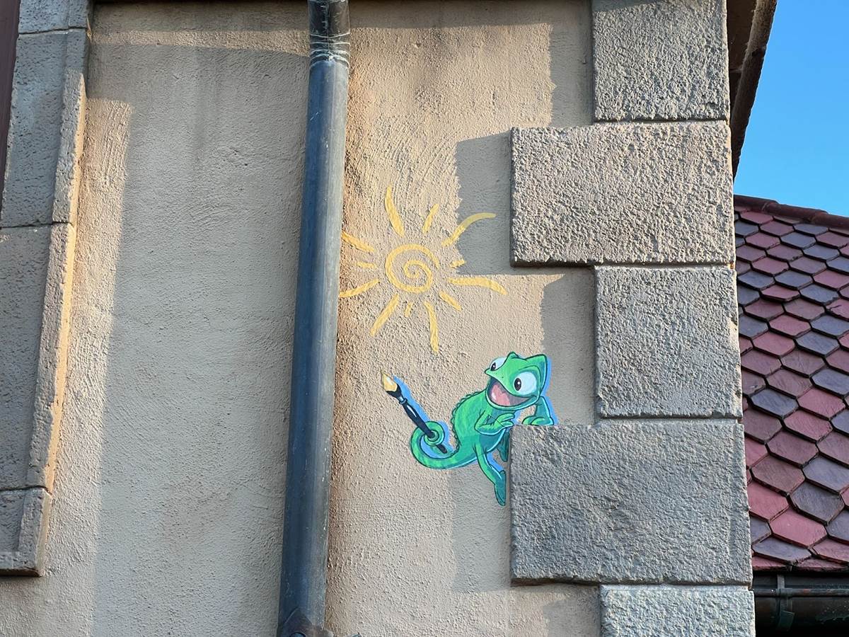 Do you think you missed something in Germany’s photo above? So did we at first. But there, camouflaged as best he can, you’ll find Pascal the chameleon from 2010’s Tangled. Need a little help? Look toward the word “Clocks.”