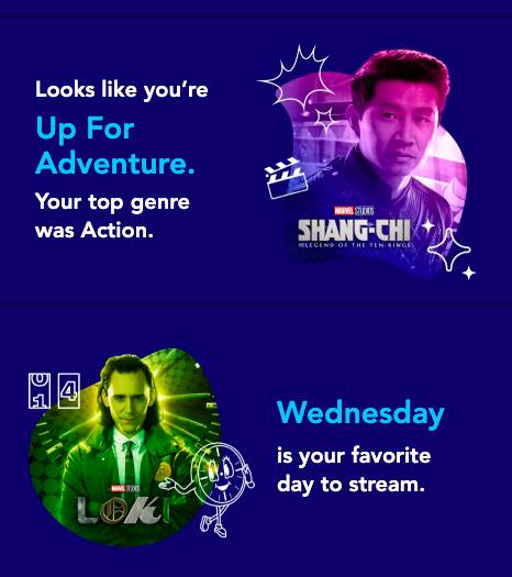 Disney+ waved goodbye to 2021 by sending out recaps to subscribers that summarize their viewing habits from the past year.