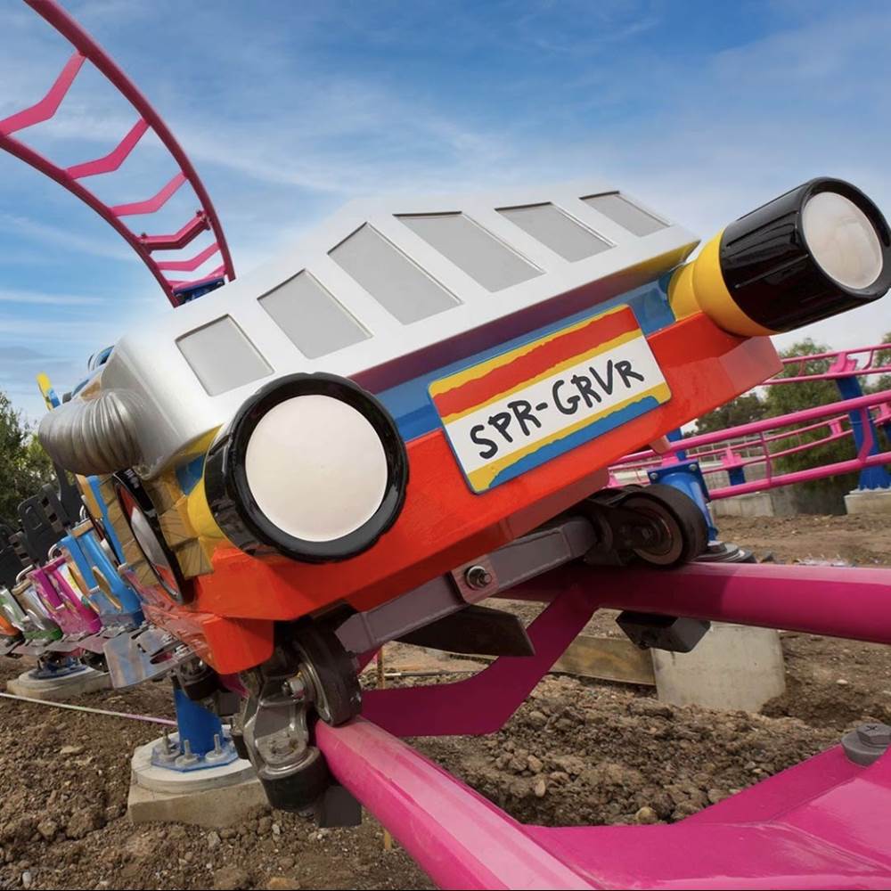 A look at the head car of Super Grover’s Box Car Derby, a roller coaster which can also be found at SeaWorld Orlando and San Antonio.