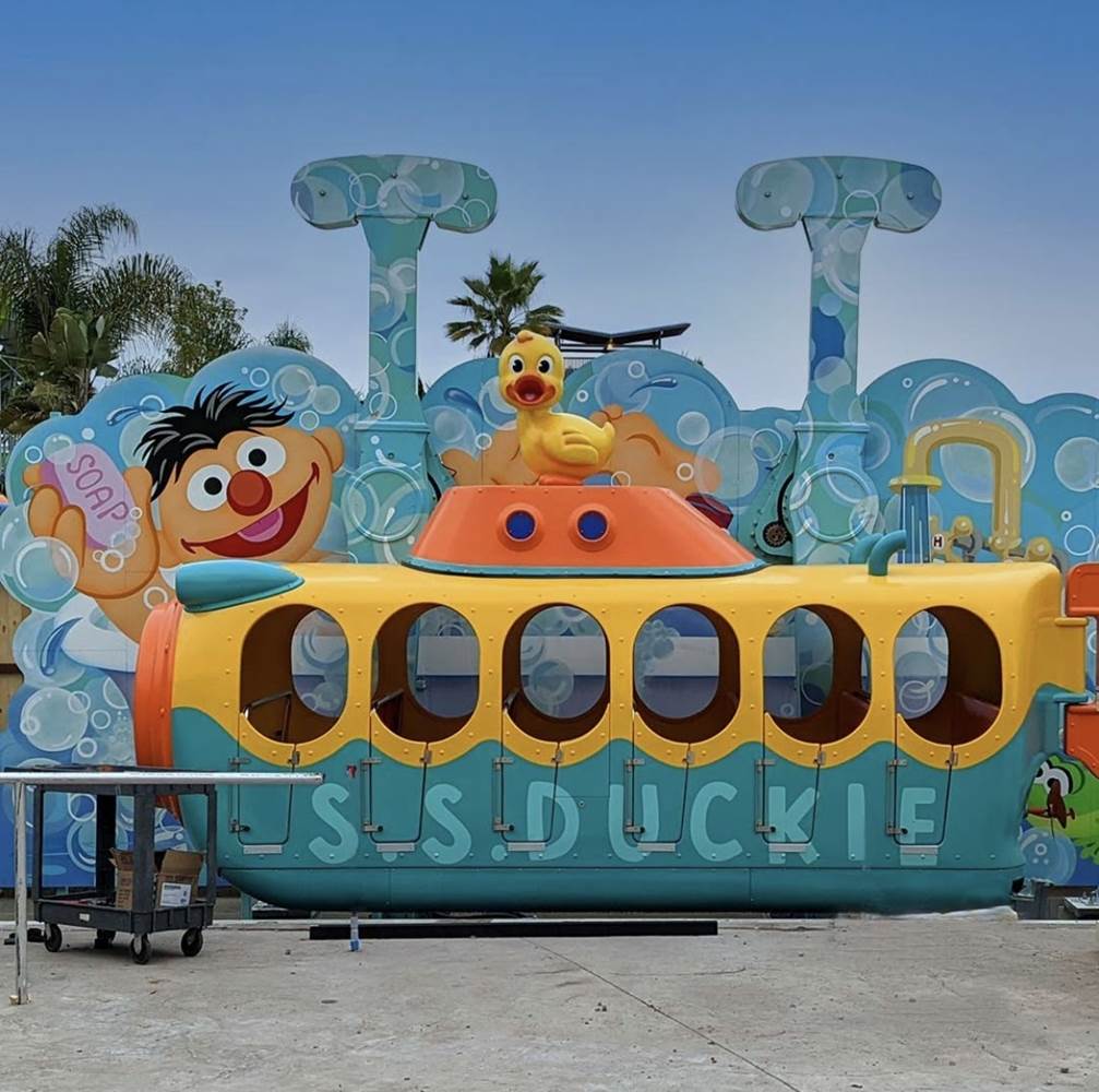 Finally, on the Rub-A-Dub Sub, guests will hop aboard the S.S. Duckie for a spin aboard Ernie’s toy submarine.