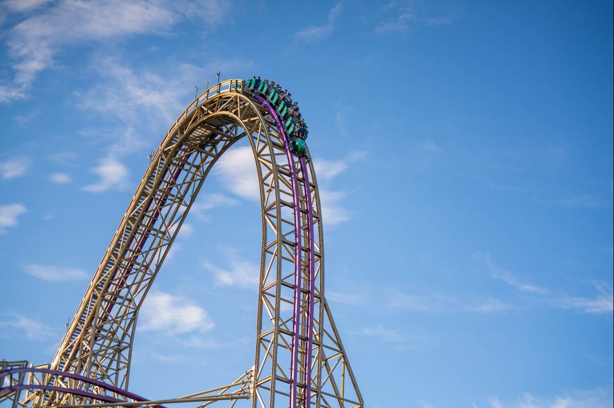 - Being North America’s tallest hybrid coaster, this ride takes thrills to new heights, plunging riders from a 206-foot-tall peak down a 91-degree drop and reaching top speeds of 76 miles per hour.