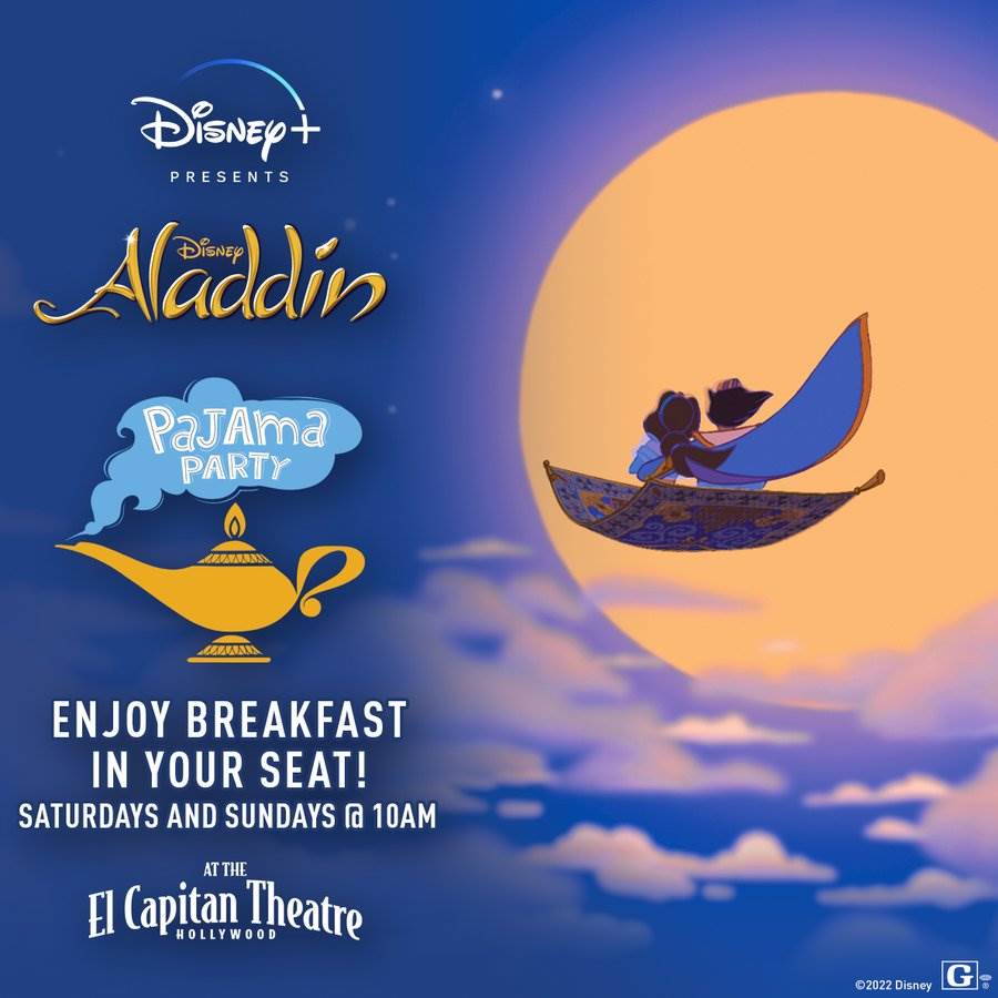 Fans of Disney’s Aladdin can experience the film in an all new way, as The El Capitan Theatre in Hollywood is offering weekend morning showings of the film that include breakfast and the encouragement to wear your pajamas!