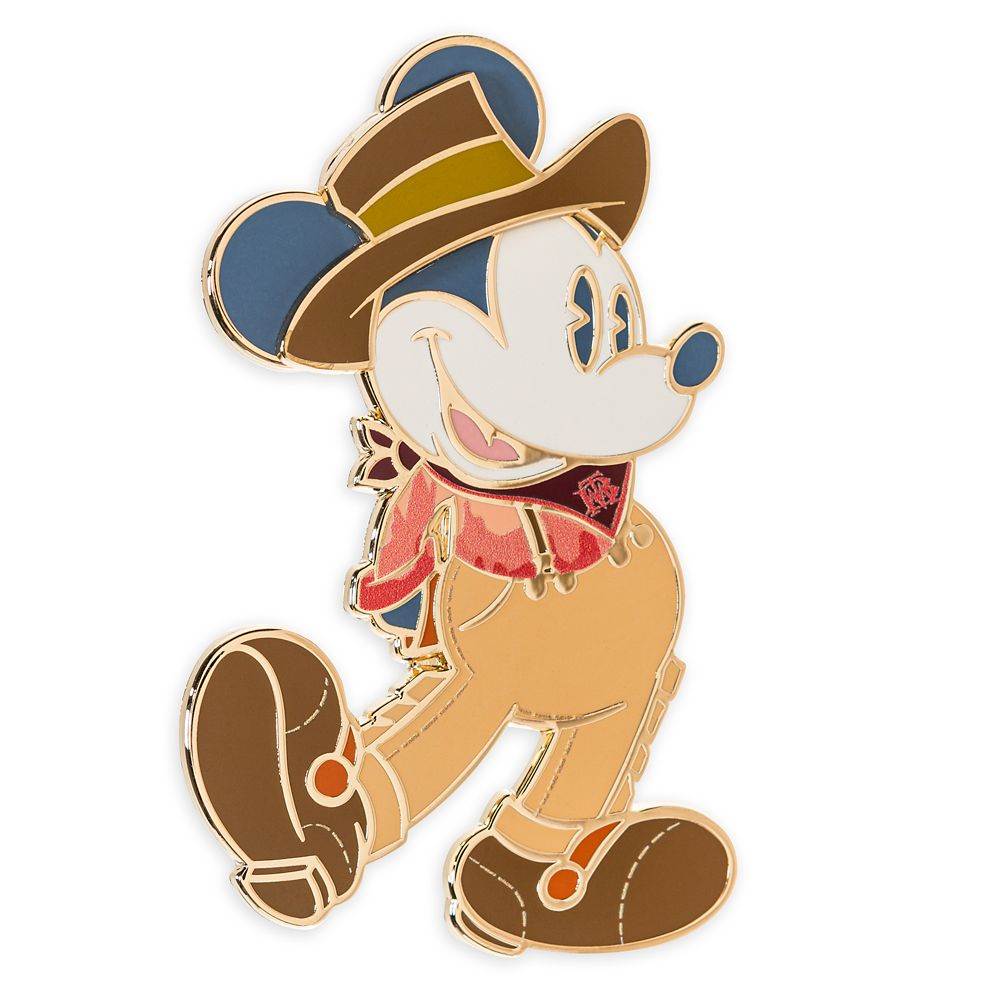 Strap in folks, we’re about to board a runaway mine train! Mickey Mouse is ready to take on the wilderness with his dashing ensemble that includes suspenders, button down, brown boots, glove and hand as well as a red bandana. The Thunder Mountain Railroad logo is featured in several places, as are circular railroad tracks, and the train itself.