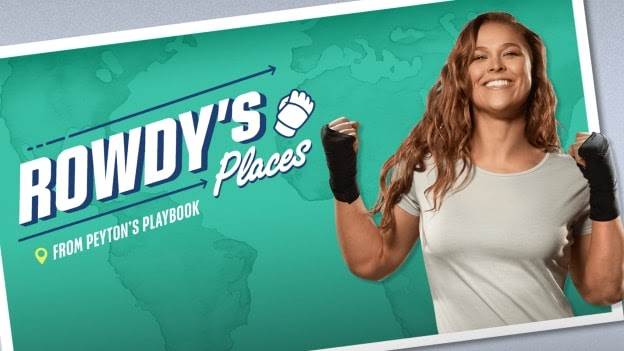 Former combat champion Ronda Rousey hosts Rowdy’s Places, a combat sports centric expansion of the Peyton’s Places franchise, on ESPN+.