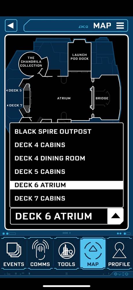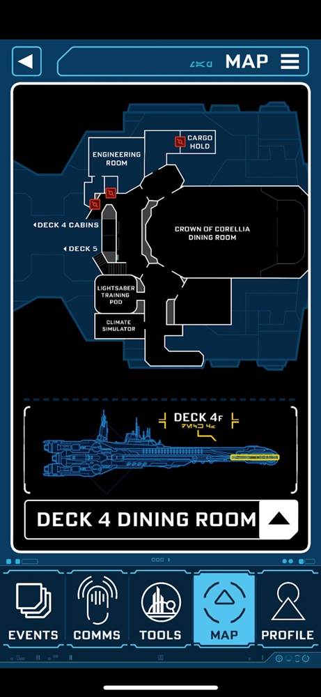 Guests aboard the Star Wars: Galactic Starcruiser will use their Datapad which is part of the Play Disney Parks app, for many things onboard the Halcyon including managing their itinerary. If your trip is scheduled to depart on select March dates you can now view your itinerary along with the map of the Galactic Starcruiser. Check out a sample itinerary below: