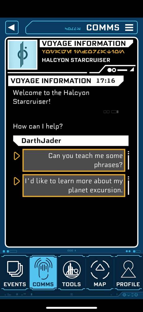 First Look at Star Wars: Galactic Starcruiser Datapad and Event Itinerary in Play Disney Parks App