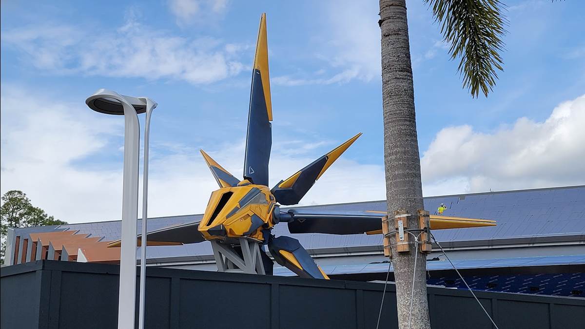 Guardians of the Galaxy: Cosmic Rewind continues to take shape at EPCOT at Walt Disney World, and now the exterior of the building is starting to look like what we’ve seen in the concept art with the addition of the new Nova Corps Star Blaster.