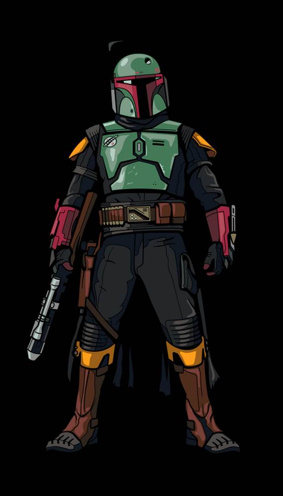 - Three of the pins are colored and depict Boba with and without his helmet as well as Fennec without hers.