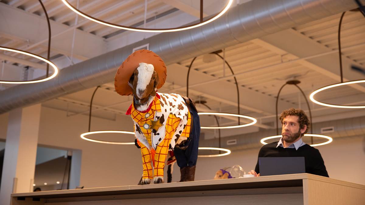 Awkwafina even walks by some of the goats and calls them the new GOATs, pointing out a Mirabel from Encanto goat and a goat dressed as Cruella as we see her in the film, Cruella, starring Emma Stone.
