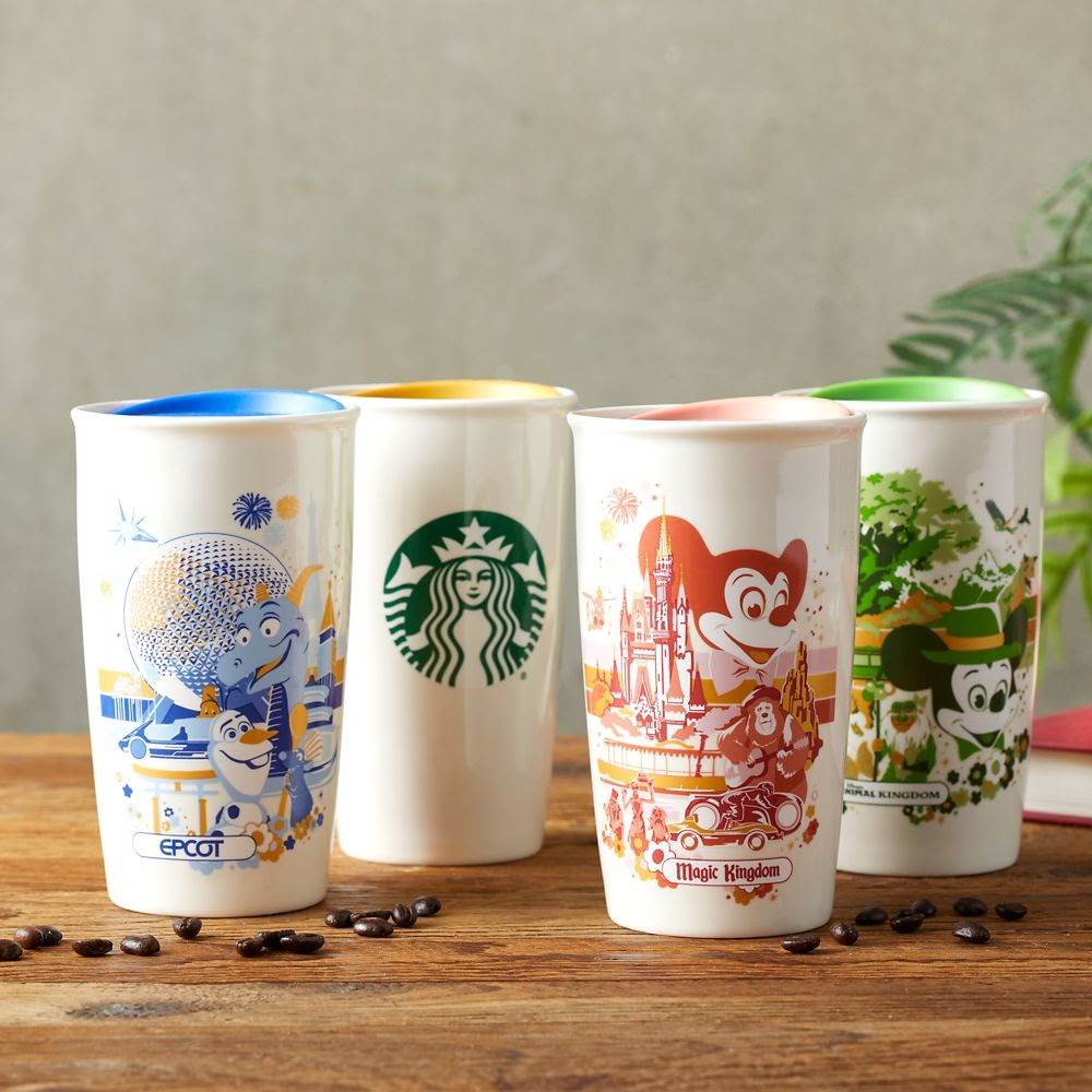 - For many years now, the companies have debuted creative Starbucks mugs themed to Disney destinations, and last year they launched a new series at Walt Disney World featuring the four parks with a 1970-80s style.