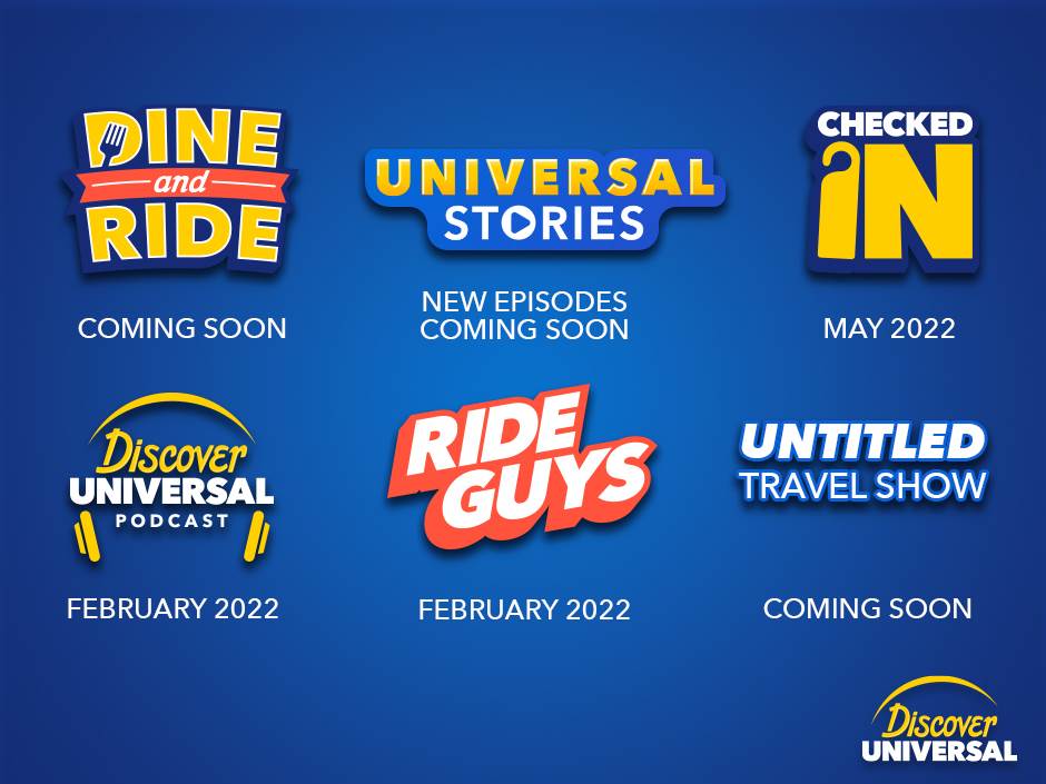 - The Discover Universal Podcast, where hosts will discuss the tips, tricks and must-know details to help guests plan the most epic vacation ever. The intro episode will be available on February 18, and guests can enjoy new episodes bi-weekly beginning February 22.