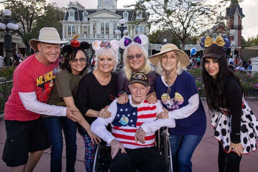 - Disney cast member and WWII U.S. Navy Veteran Alex Stromski was also in attendance wearing his Navy Dress Whites uniform to celebrate and honor William. During the ceremony, Alex, along with members of the Disney SALUTE Veteran affinity group, presented William with a shadow box containing a flag that was flown over Magic Kingdom Park in his honor.