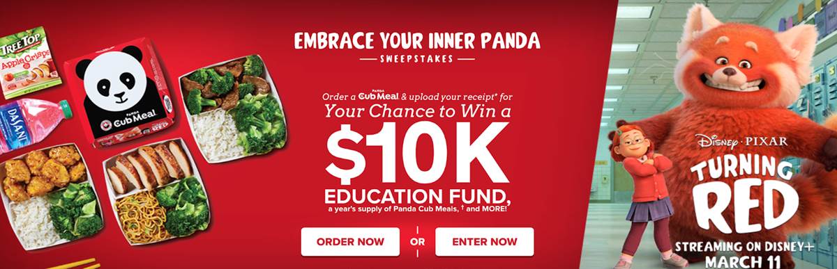 Panda Express has teamed up with Pixar and their new movie Turning Red to host the Embrace Your Inner Panda Sweepstakes offering a $10,000 education fund grand prize.