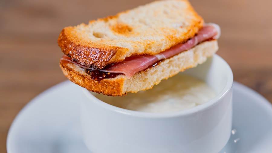 - Old World Aged White Cheddar Lager Soup with toasted fig and prosciutto sandwich (available with Sip & Savor Pass) (New)