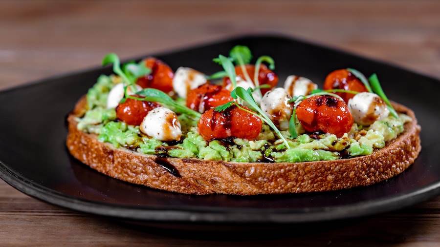 - Avocado Toast Trio: Avocado toast three ways-including avocado with an over-easy egg, avocado with sautéed shrimp, and avocado with caprese-style cherry tomatoes all served on La Brea Bakery bread