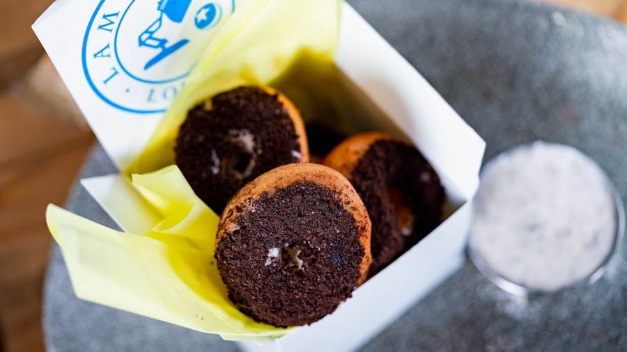 - Cookies and Cream Donuts topped with crème-filled chocolate cookie pieces served with a vanilla and cookie dipping sauce (New)