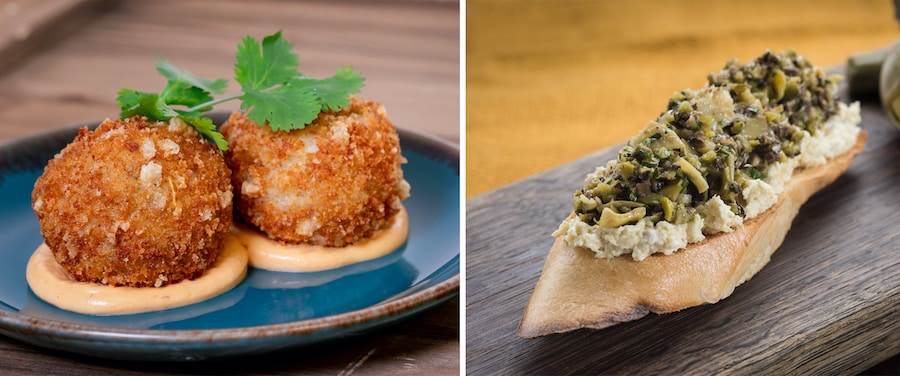 - Artichoke Toast with Olive Tapenade: Toasted sliced baguette with artichoke cream cheese, topped with olive & artichoke tapenade and drizzled with olive oil (available with Sip & Savor Pass)