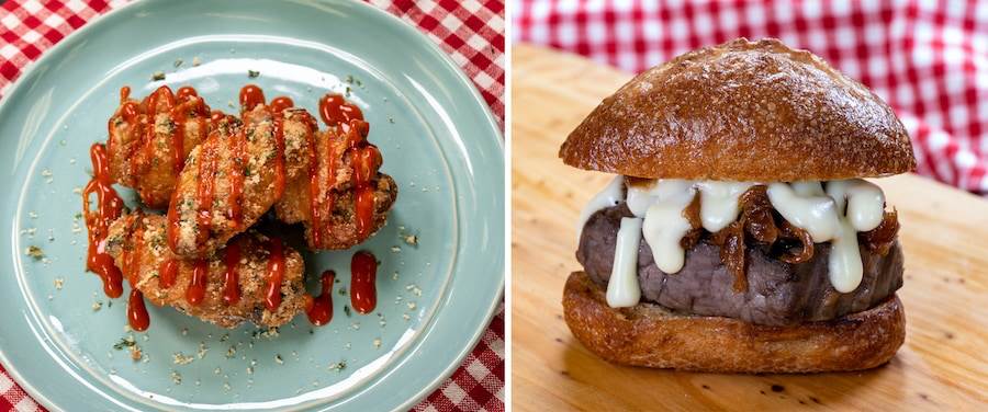 - French Onion Grilled Beef Tenderloin Slider: Grilled beef tenderloin topped with a Gruyère cheese sauce and caramelized onions served on an onion roll (available with Sip & Savor Pass)