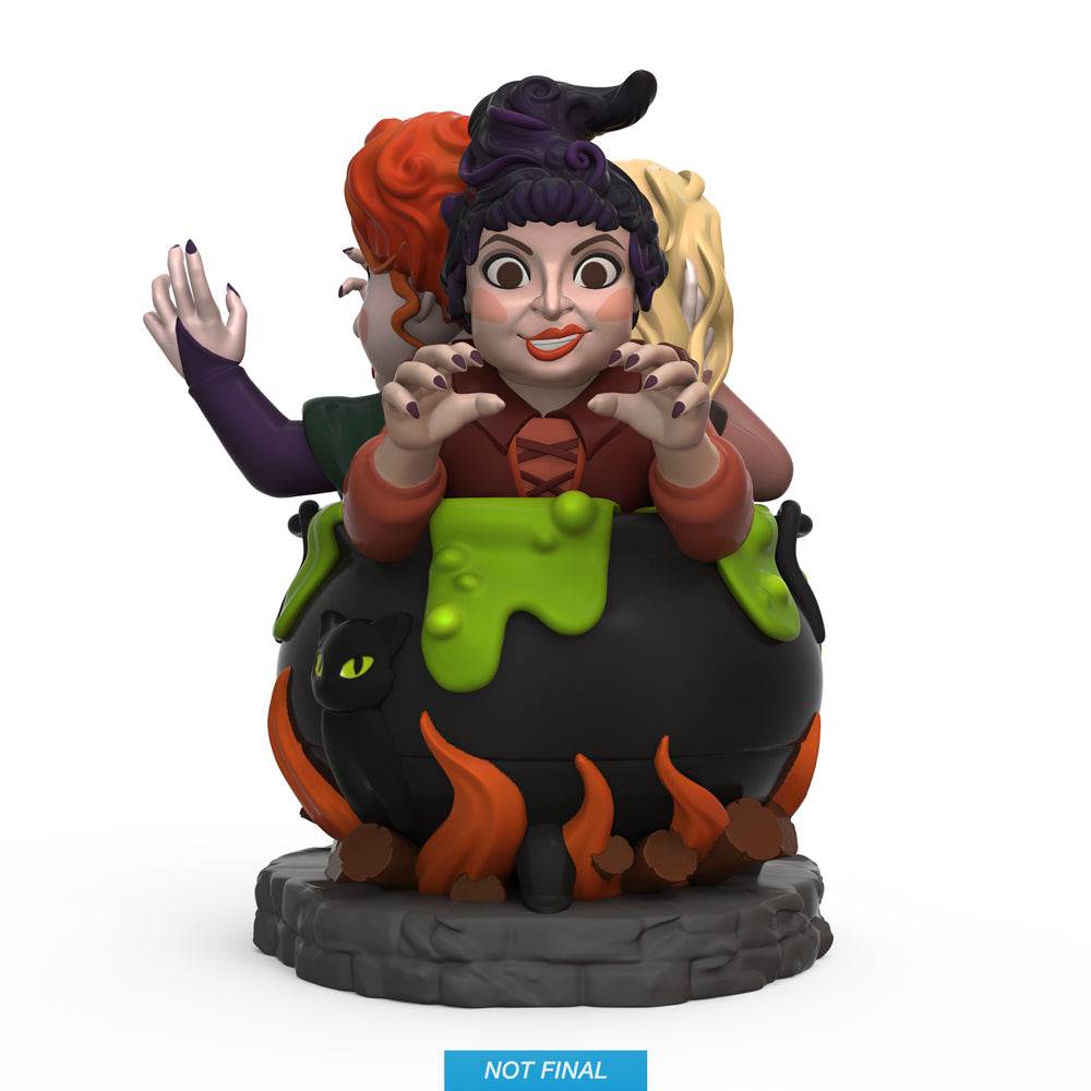 - The Hocus Pocus Witches in Cauldron Glow-in-the-Dark Vinyl Art Figure measures 7” tall and will transport you to a time of magic.